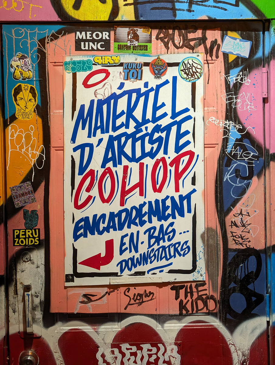 - Matériaux de graffiti : aérosols, marqueurs, encre et accessoires.