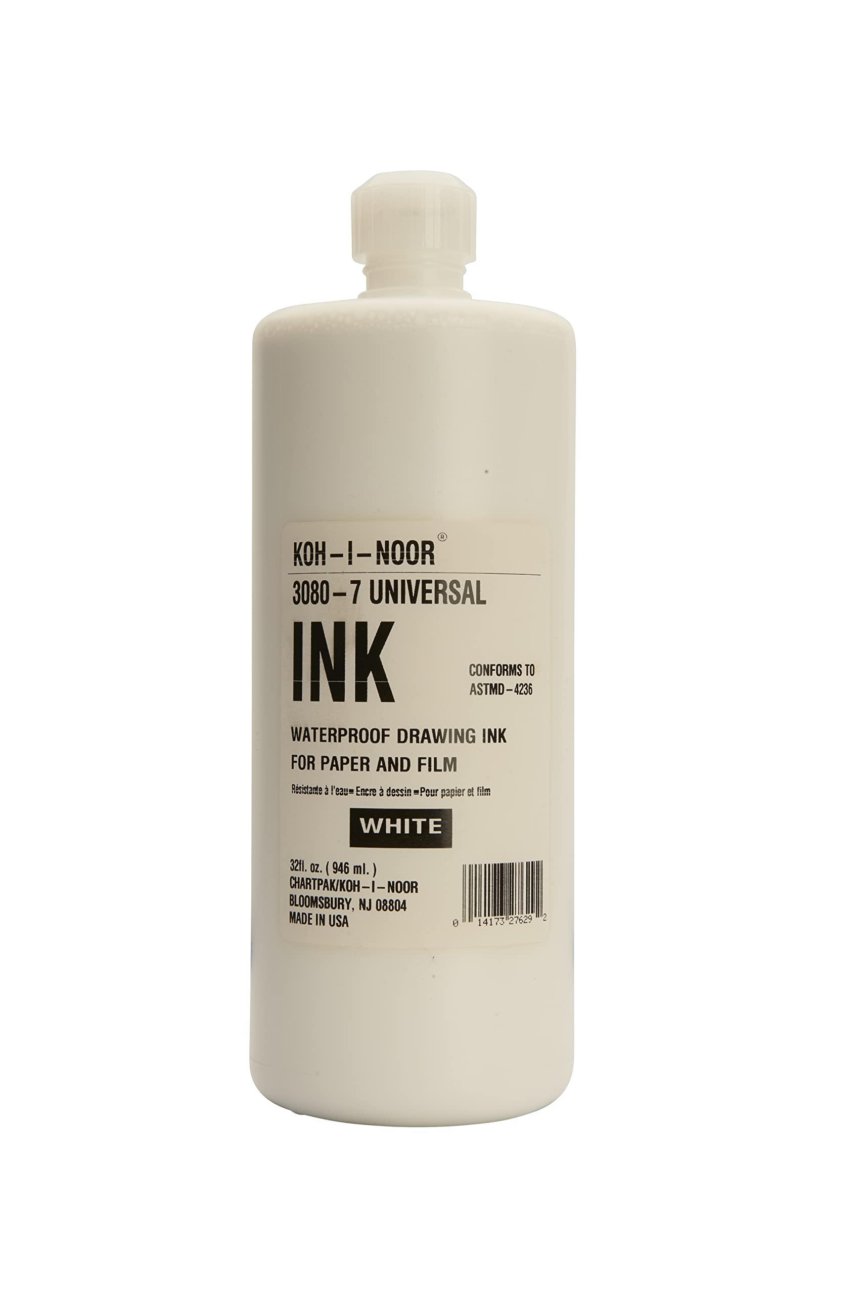 La gamme d'encres Koh-I-Noor® Universal® a d'abord été développée pour être utilisée avec des stylos techniques. La base de teinture élimine le risque de colmatage des stylos Rapidogaph® aux pointes les plus fines et offre une application de couleur intense. La gomme laque utilisée dans notre formule d'encre crée une encre imperméable qui peut être utilisée sur des substrats en papier et en film. L'encre noire est très opaque et la blanche est semi-opaque, tandis que les encres colorées sont semi-transparentes.