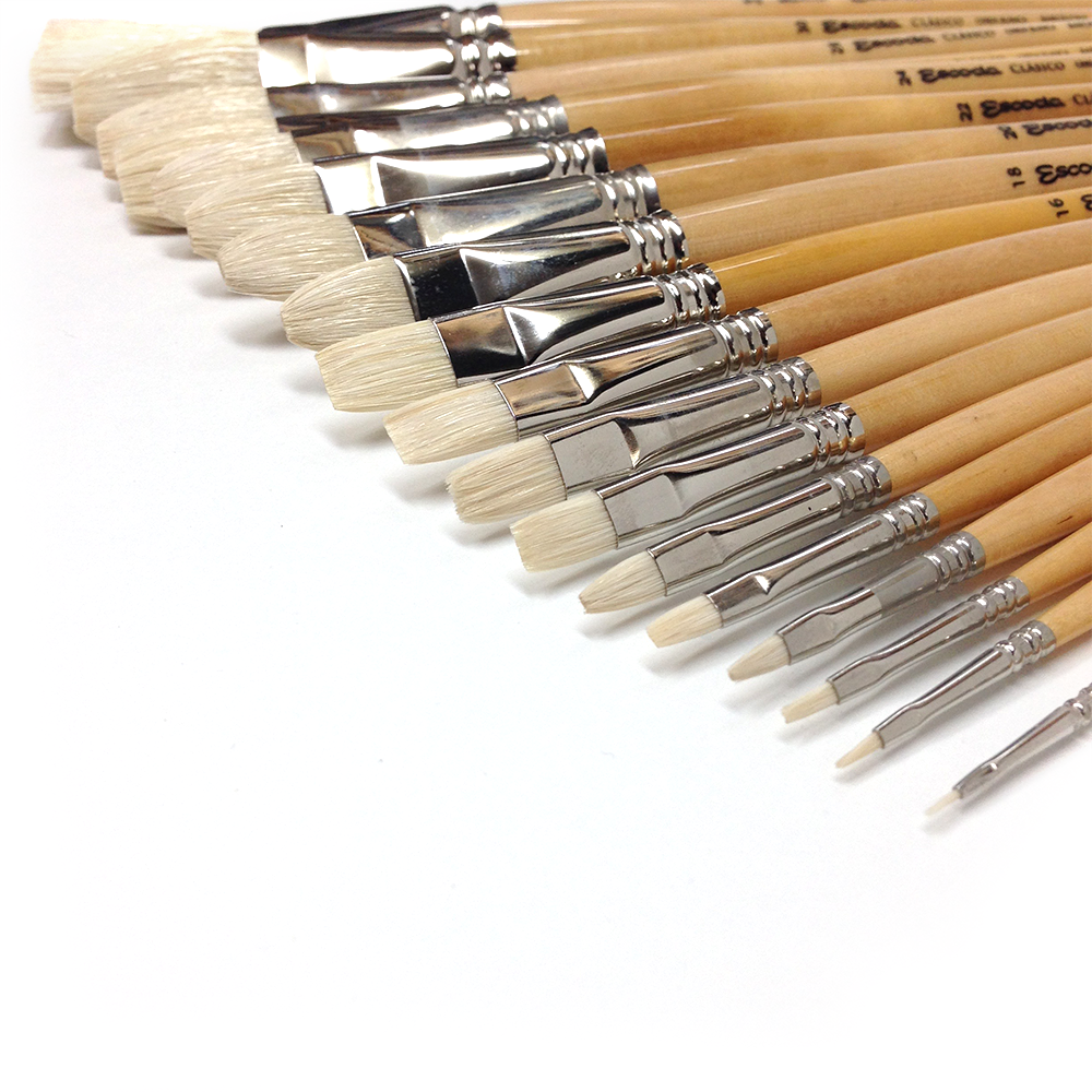 Fabriqué à la main en poils de porc, ce pinceau est traditionnellement utilisé en peinture à l'huile. Les poils chinois blancs de Chungking sont de la plus haute qualité. Sa dureté naturelle répond parfaitement à la technique plus ou moins dense de la peinture à l'huile et à l'acrylique.
